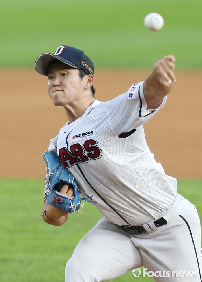 (서울=포커스뉴스) 3일 서울 잠실구장에서 열린 2016 프로야구 LG-두산 경기에서 1회초 두산 선발투수 진야곱이 투구하고 있다.