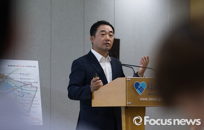 (서울=포커스뉴스) 김학진 서울시 도시계획국장이 3일 오전 서울시청 브리핑룸에서 서울시 양재·우면 R&CD 육성 종합 계획을 발표하고 있다.