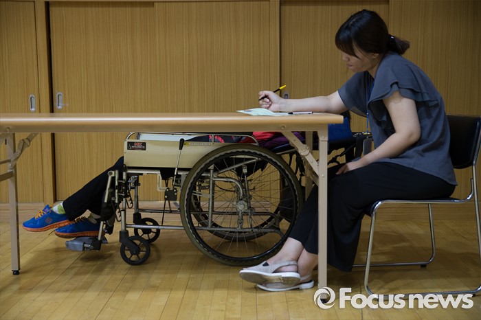 (서울=포커스뉴스) 3일 오전 서울 종로구 경운학교에서 열린 '2016년 초·중·고졸 학력인정 제2회 검정고시'에 몸이 불편한 응시자가 시험시작을 기다리고 있다.