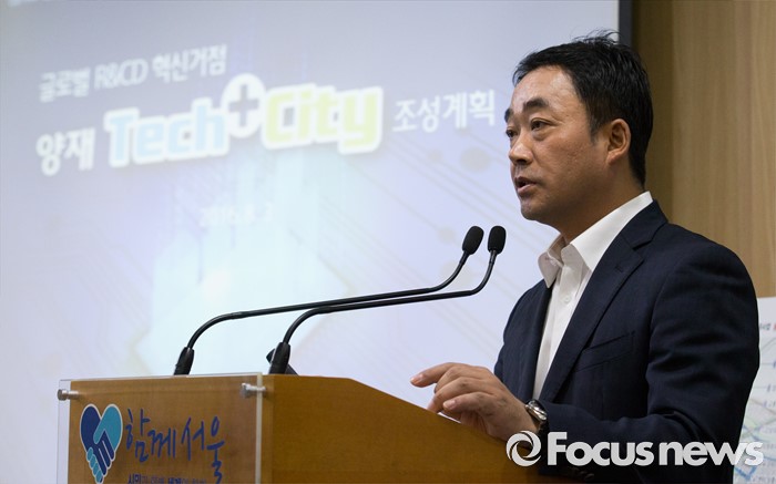 (서울=포커스뉴스) 김학진 서울시 도시계획국장이 3일 오전 서울시청 브리핑룸에서 서울시 양재·우면 R&CD 육성 종합 계획을 발표하고 있다.