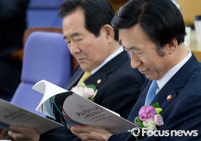 (서울=포커스뉴스) 3일 오전 서울 여의도 국회 의원회관에서 열린 공공외교법 발효기념 심포지엄에 참석한 윤병세(오른쪽) 외교부 장관, 정세균 국회의장이 자료집을 살펴보고 있다.