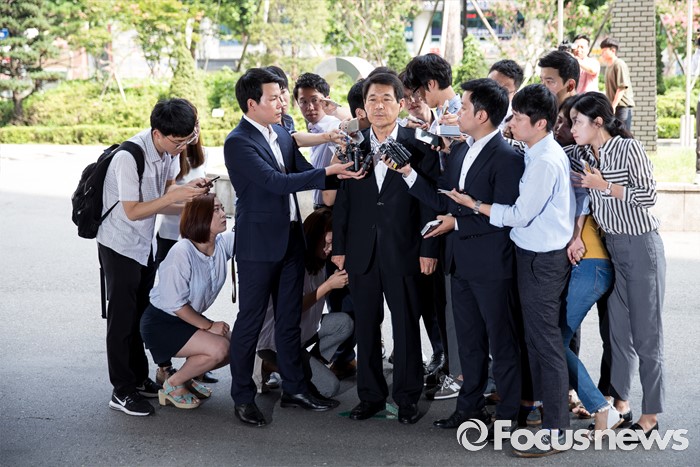 (서울=포커스뉴스) 보좌관의 월급을 빼돌려 정치자금으로 사용한 혐의를 받고 있는 이군현 새누리당 의원이 피의자 신분으로 4일 오전 서울 양천구 서울남부지방검찰청으로 들어서기 전 취재진의 질문을 받고 있다.