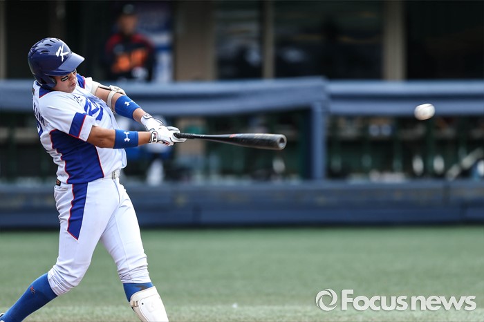 (서울=포커스뉴스) 1일 오후 서울 양천구 목동종합운동장에서 열린 2016 세계 청소년 야구 대회 대한민국과 일본 A조 경기 5회초 1사 1,3루 상황, 대한민국 김도환이 안타를 치고 있다.