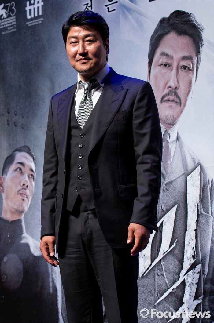 (서울=포커스뉴스) 배우 송강호가 4일 오전 서울 강남구 압구정 CGV에서 열린 영화 '밀정' 제작보고회에 참석해 포즈를 취하고 있다. 배우 송강호, 공유, 한지민, 엄태구, 신성록 등이 출연하는 영화 '밀정'은 일제 강점기 무장독립단체 의열단과 일본 경찰 간의 암투를 그린 작품으로 오는 9월 개봉 예정이다.