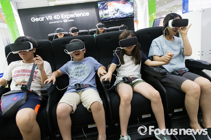 (서울=포커스뉴스) 4일 오후 서울 강남구 코엑스에서 열린 '제20회 대한민국 과학창의축전'을 찾은 시민들이 VR(가상현실) 체험을 하고 있다.