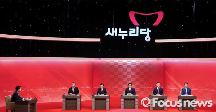 (서울=포커스뉴스) 4일 오후 서울 강서구 등촌동 SBS공개홀에서 열린 새누리당 대표 경선 4차 TV토론회에 참석한 의원들이 토론을 하고 있다. 오른쪽부터 한선교, 주호영, 정병국, 이주영, 이정현 의원.