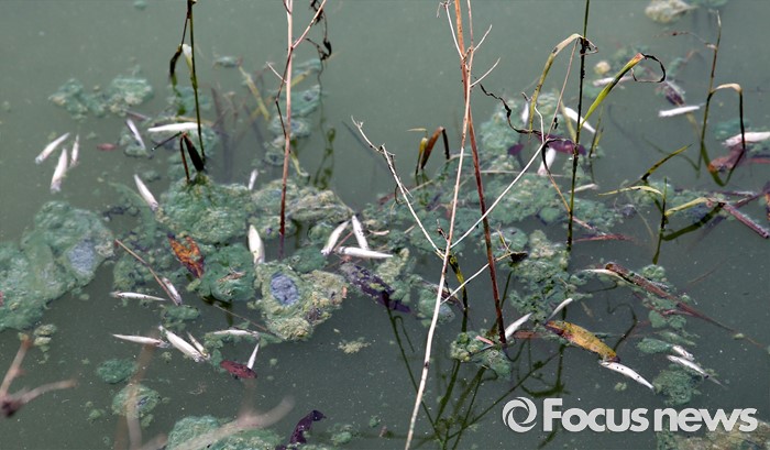 | △ 녹조로 폐사된 물고기 |