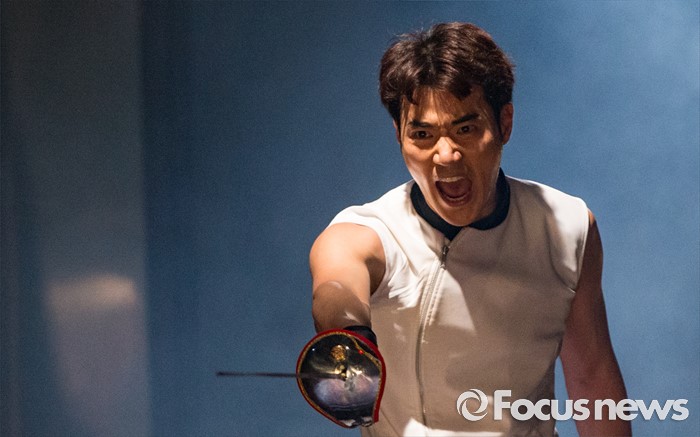(서울=포커스뉴스) 4일 오후 서울 중구 충무아트센터에서 열린 연극 '햄릿-더 플레이' 언론시연회에 참석한 배우 김강우가 열연하고 있다.