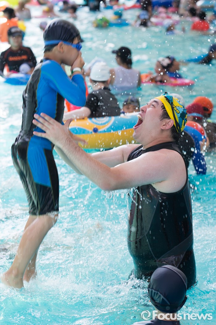 (서울=포커스뉴스) 서울에 첫 폭염경보가 내려진 4일 오후 서울 서초구 양재시민의숲 내 양재천 수영장을 찾은 시민들이 물놀이를 하고 있다.
