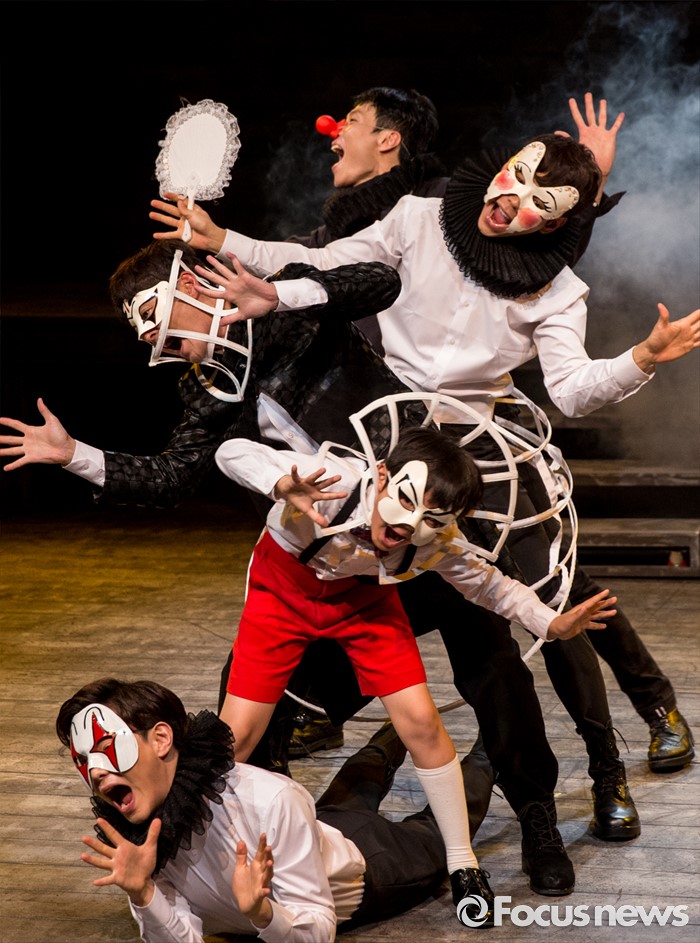 (서울=포커스뉴스) 4일 오후 서울 중구 충무아트센터에서 열린 연극 '햄릿-더 플레이' 언론시연회에 참석한 배우들이 열연하고 있다.