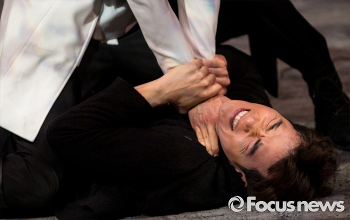 (서울=포커스뉴스) 4일 오후 서울 중구 충무아트센터에서 열린 연극 '햄릿-더 플레이' 언론시연회에 참석한 배우 김강우가 열연하고 있다.