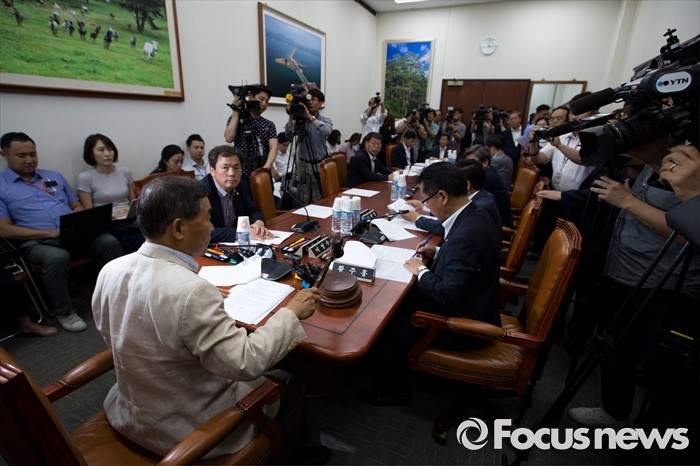 (서울=포커스뉴스) 국회 농해수위 부정청탁금지법 소위 위원장인 황주홍(왼쪽) 국민의당 의원이 4일 오후 서울 여의도 국회에서 열린 농림축산식품해양수산위원회 부정청탁금지법 관련 소위에 참석해 의사봉을 두드리고 있다.