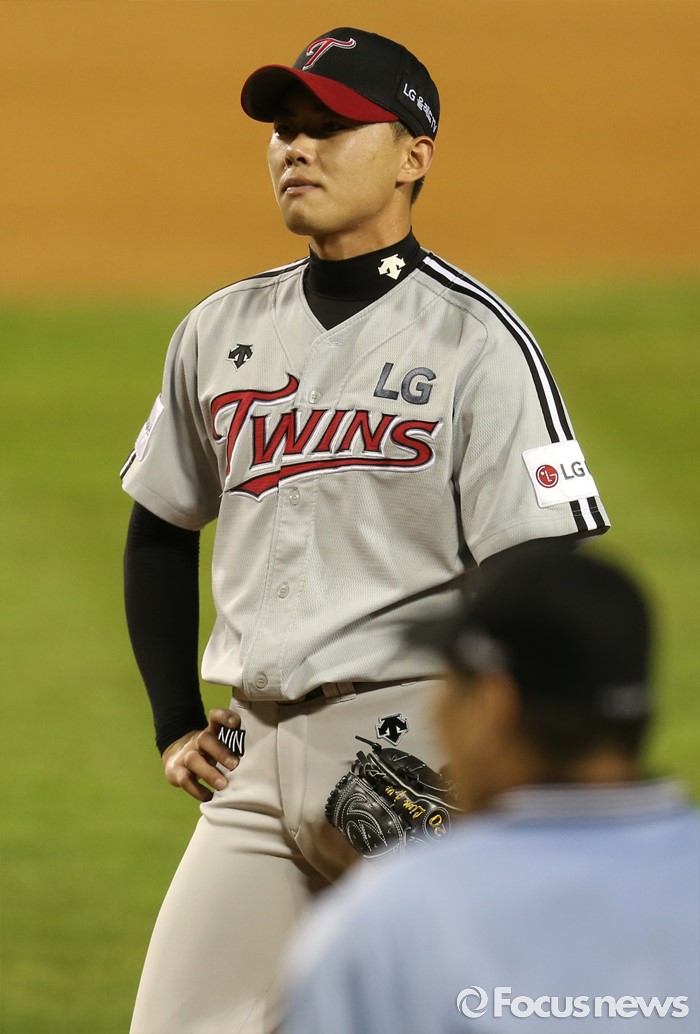 (서울=포커스뉴스) 4일 서울 잠실구장에서 열린 2016 프로야구 LG-두산 경기 연장 10회말 1사 1,3루에서 폭투로 동점을 허용한 LG 투수 임정우가 망연자실한 표정을 짓고 있다.