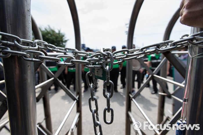 한편, 갑을오토텍은 2014년 통상임금 확대 적용 후 2400억원 매출에 60억원 적자로 돌아섰고, 지난해에도 2800억원의 매출에 110억원가량의 적자가 발생했다.(아산=포커스뉴스) 지난 1일 오후 충남 아산 탕정면 갑을오토텍에서 노조원들과 사측 경비 용역들이 대치하고 있다. 2016.08.01 김인철 기자