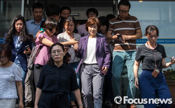 | △ 취재진 뒤로하고 경찰서 나서는 최경희 총장 |