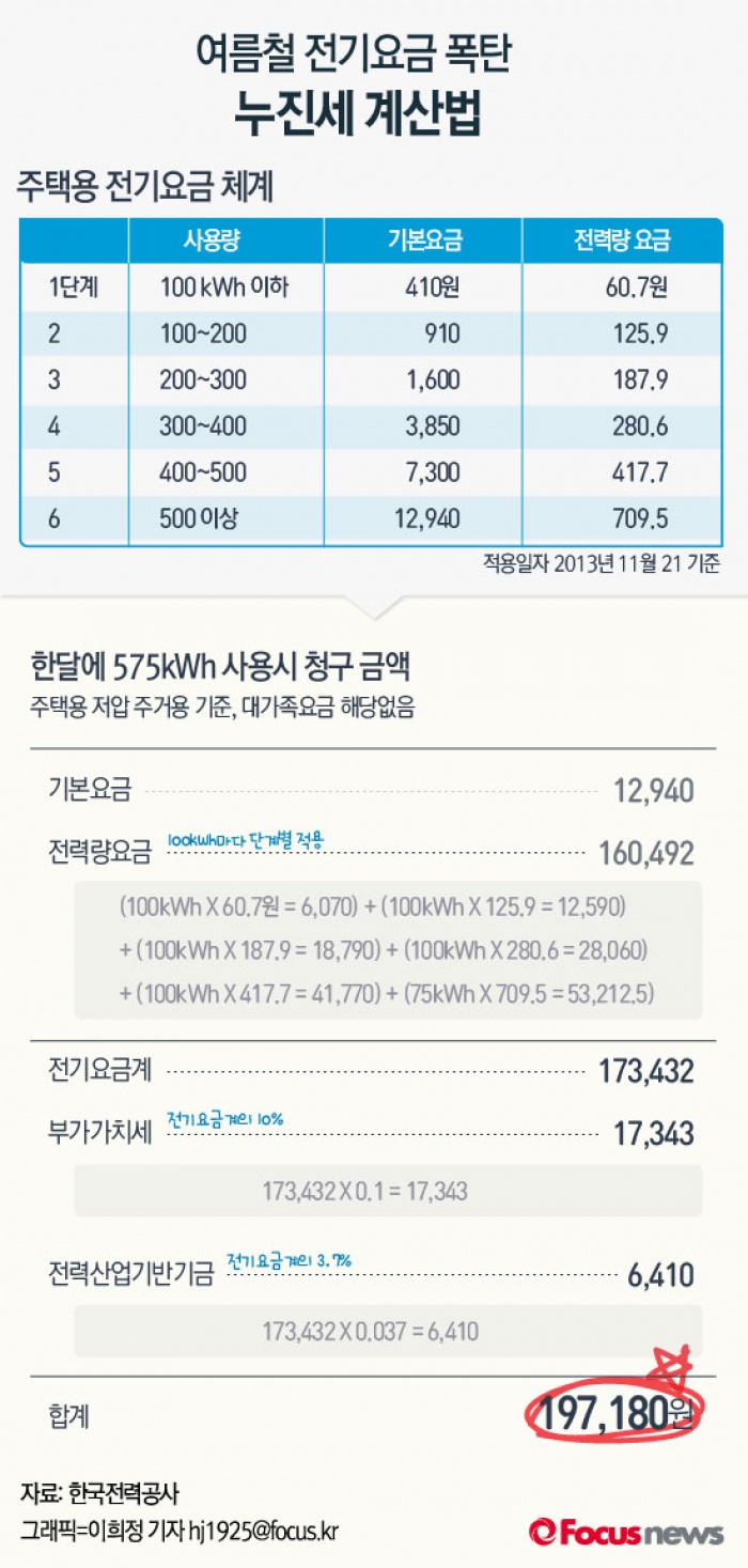 [그래픽] 여름철 전기요금 폭탄 누진세 계산법