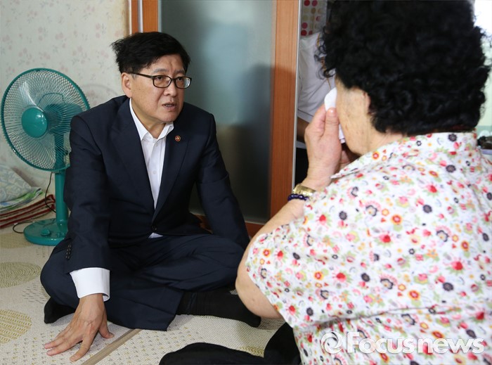 (세종=포커스뉴스) 정진엽 보건복지부 장관이 5일 오전 세종시 금남면에서연이은 폭염으로 무더위에 취약한 독거노인들의 어려움을 점검하고 애로사항을 청취하고 있다.