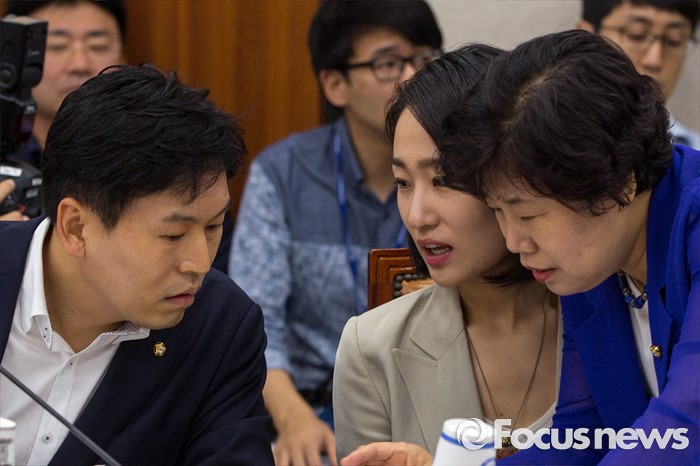 (서울=포커스뉴스) 국회 산업통산자원위원회 소속 국민의당 의원들이 5일 오전 서울 여의도 국회에서 열린 산업통상자원위원회 전체회의에 참석해 대화 하고 있다. 왼쪽부터 손금주 의원, 김수민 의원, 조배숙 의원.