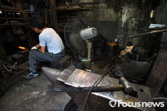 | △ 50년 경력 대장장이, '선풍기 하나로 불볕더위 버틴다' |