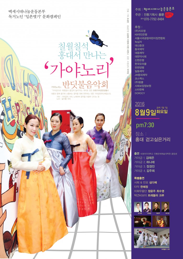 이번 공연은 숙명여자대학교 대학원 졸업생들로 구성된 가야노리 공연단은 가야금 공연을 비롯해 민요, 타악, 이화무용단공연, 택견비보이 트레블러 크루 공연 등 풍성한 프로그램으로 구성된다. 1시간30분 동안 무료 공연이다.'가야노리 반딧불 음악회' 포스터. <사진제공=기획사 용문>