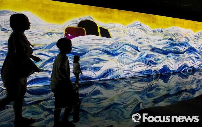 (서울=포커스뉴스) 5일 오후 서울 송파구 잠실 롯데월드 내 마련된 '팀랩월드' 상설전시장을 찾은 관람객들이 화려한 디지털아트를 체험하고 있다.