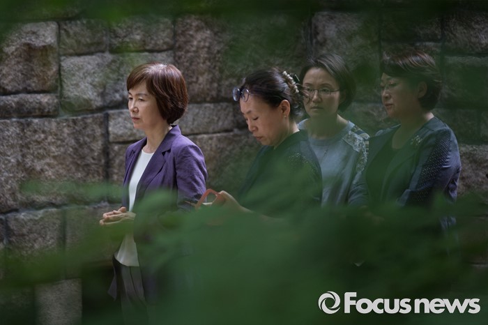 (서울=포커스뉴스) 최경희(왼쪽) 이화여대 총장이 5일 오후 서울 서대문구 이화여대 본관을 점거농성 중인 학생들과 대화 하기 위해 본관 앞을 서성이고 있다. 이날 최경희 이화여대 총장은 대학 본관 점거농성 중 교수·교직원 감금 혐의를 받고 있는 학생들의 처벌을 원치 않는다며 탄원서를 경찰에 제출했고 농성 중인 이화여대 학생들은 “이중적 행동”이라며 최 총장의 사퇴를 거듭 촉구했다.