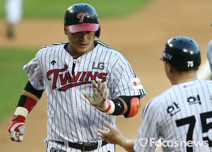 (서울=포커스뉴스) 5일 서울 잠실구장에서 열린 2016 프로야구 kt-LG 경기 2회말 LG 선두타자로 나온 정상호가 좌월 솔로 홈런을 치고 한혁수 코치의 환영을 받으며 홈인하고 있다.
