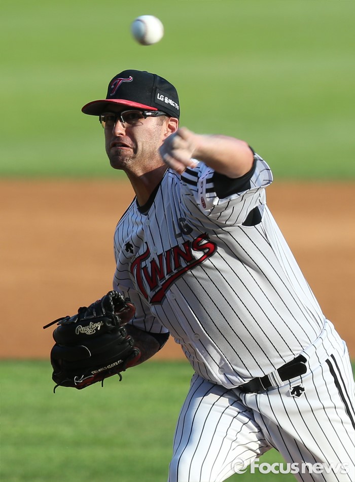 (서울=포커스뉴스) 5일 서울 잠실구장에서 열린 2016 프로야구 kt-LG 경기에서 1회초 LG 선발투수 허프가 투구하고 있다.
