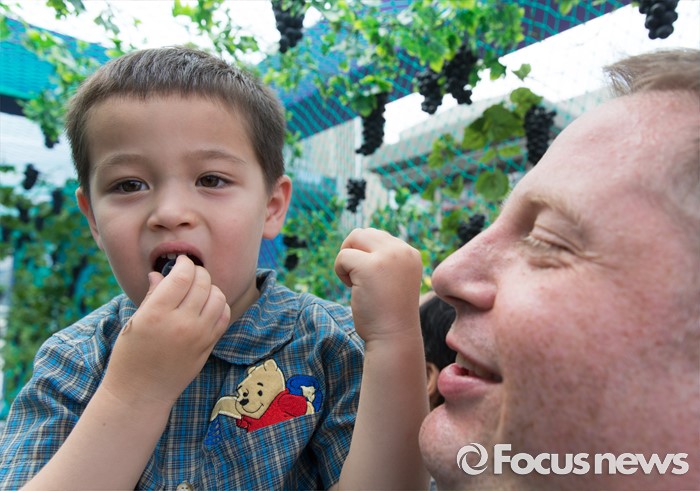 (서울=포커스뉴스) 8일 오전 서울 광화문광장에서 열린 '2016 포도데이' 행사에 참석한 외국인 가족이 포도를 먹고 있다.