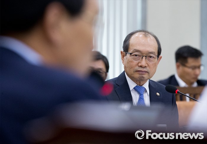 (서울=포커스뉴스) 8일 오후 서울 여의도 국회에서 열린 국방위원회 전체회의에 참석한 장명진 방위사업청장이 의원들의 질의를 듣고 있다.