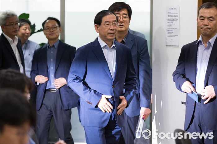 (서울=포커스뉴스) 박원순 서울시장이 8일 오후 서울 중구 서울시청 브리핑룸에서 청년수당과 관련한 박근혜 대통령과 면담을 요청하는 기자회견을 위해 들어서고 있다.