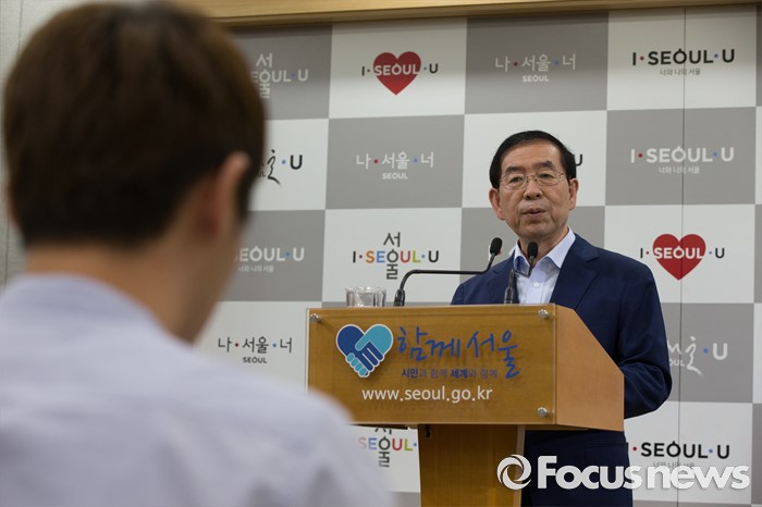 (서울=포커스뉴스) 박원순 서울시장이 8일 오후 서울 중구 서울시청 브리핑룸에서 열린 청년수당과 관련한 박근혜 대통령과 면담을 요청하는 기자회견에서 취재진의 질문에 답하고 있다.