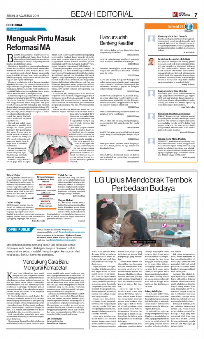 (서울=포커스뉴스) 다문화가정을 주인공으로 한 LG유플러스의 리얼스토리 광고 ‘엄마의 수업’편이 ‘미디어 인도네시아’에서 8일 소개됐다. 1970년 창간한 미디어 인도네시아는 인도네시아에서 두 번째로 많은 발행부수를 기록하고 있는 신문사다.