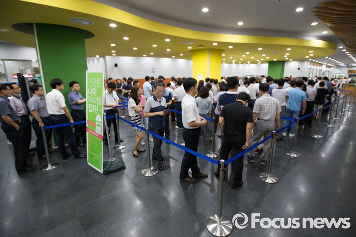 (서울=포커스뉴스) 수도권 대부분 지역에 엿새째 폭염경보가 내려진 9일 오전 서울 중구 한 구내식당이 직원들로 붐비고 있다.