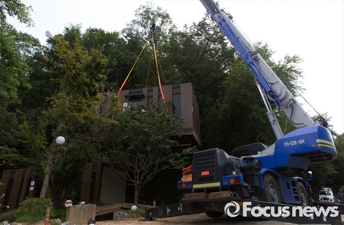 (남양주=포커스뉴스) 9일 오전 경기 남양주 봉주르 카페에서 남양주시 관계자들이 중장비를 동원해 건축법 제11조 등 3건의 위반 건축물에 대한 행정대집행을 하고 있다.