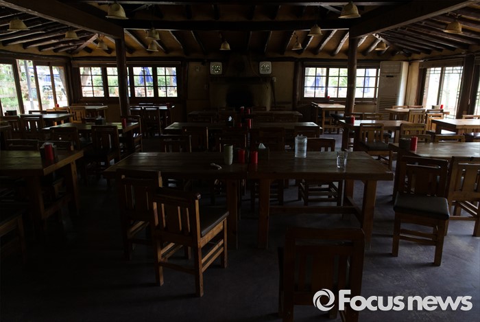 (남양주=포커스뉴스) 9일 오전 경기 남양주 봉주르 카페 내부가 영업허가 취소, 폐쇄로 인해 텅 비어 있다.