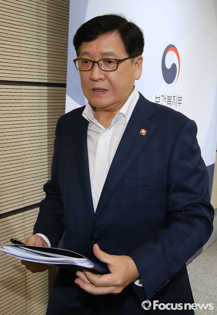 (세종=포커스뉴스) 정진엽 보건복지부 장관이 9일 오전 세종시 정부세종청사 보건복지부 공용브리핑룸에서 박원순 서울시장의 청년수당에 대한 복지부의 입장을 발표하고 회견장을 나서고 있다. 정 장관은 '박 시장이 박 대통령에게 청년수당 관련 대화를 제의한 것에 진정성이 없는 제스처'라고 밝혔다.