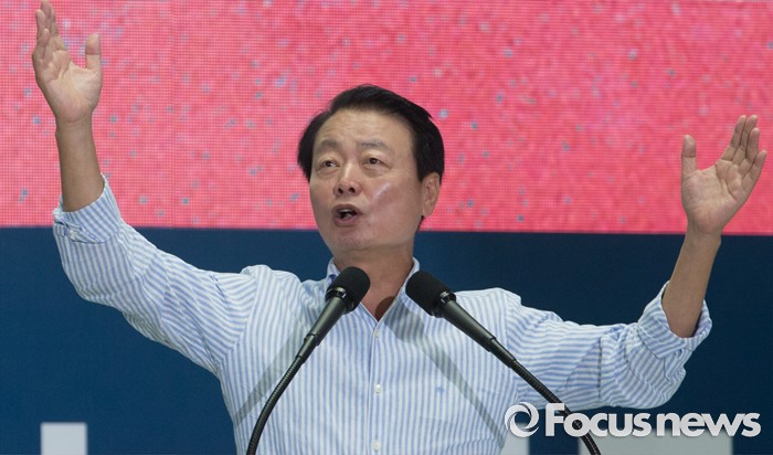 (서울=포커스뉴스) 9일 오후 서울 송파구 잠실실내체육관에서 열린 새누리당 4차 전당대회에 참석한 한선교 당대표 후보가 정견발표를 하고 있다.