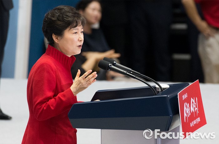 (서울=포커스뉴스) 박근혜 대통령이 9일 오후 서울 송파구 잠실실내체육관에서 제4차 새누리당 전당대회에 참석해 축사를 하고 있다.