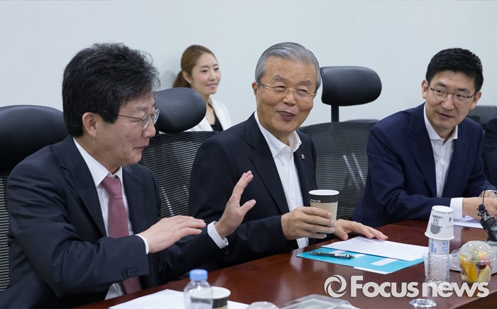 (서울=포커스뉴스) 10일 오전 서울 여의도 국회 의원회관에서 열린 '어젠다(Agenda) 2050' 회의에 참석한 유승민(왼쪽) 새누리당 의원과 김종인(가운데) 더불어민주당 비대위 대표가 대화하고 있다. 오른쪽은 김세연 새누리당 의원.