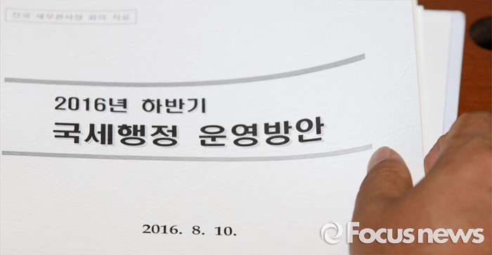 (세종=포커스뉴스) 10일 오전 세종시 정부세종2청사 국세청에서 열린 전국세무관서장회의에서 참석자가 국세행정 운영방안 자료를 살피고 있다.