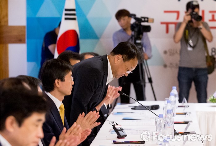 (서울=포커스뉴스) 10일 오후 서울 여의도 국회 사랑재에서 열린 지역경제 활성화를 위한 규제프리존 특별법 왜 필요한가? 간담회에 참석한 유일호 경제부총리 겸 기획재정부 장관이 인사말을 마친 뒤 인사하고 있다.