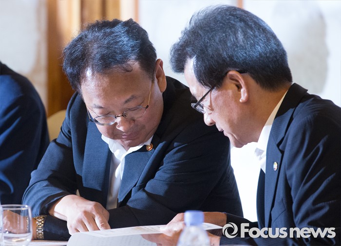 | △ 논의하는 유일호-이시종 |