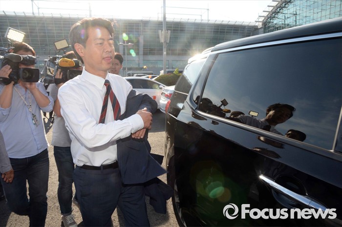 (인천공항=포커스뉴스) 사드배치에 반발하는 중국 측 입장을 듣기 위해 중국을 방문한 김영호(가운데) 더불어민주당 의원이 10일 오후 인천국제공항을 통해 귀국 후 차량에 탑승하고 있다.