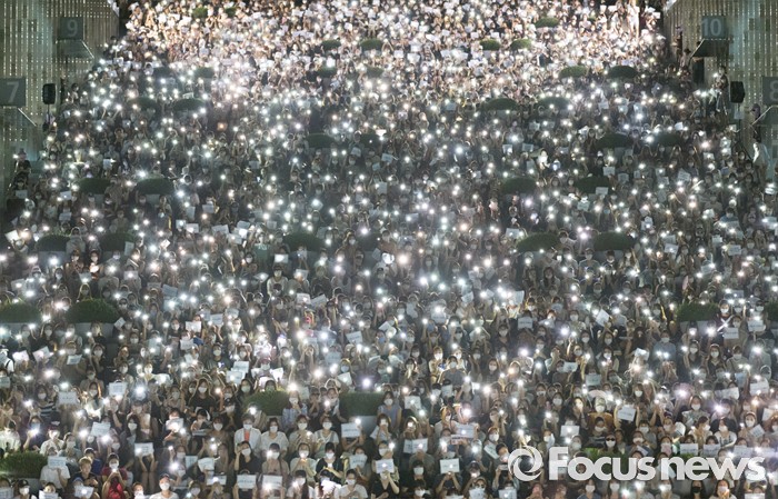 (서울=포커스뉴스) 10일 오후 서울 서대문구 이화여대에서 재학생 및 졸업생들이 최경희 총장의 사퇴를 요구하며 대규모 시위를 하고 있다.