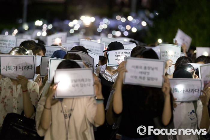 (서울=포커스뉴스) 10일 오후 서울 서대문구 이화여대에서 재학생 및 졸업생들이 최경희 총장의 사퇴를 요구하며 행진을 하고 있다.