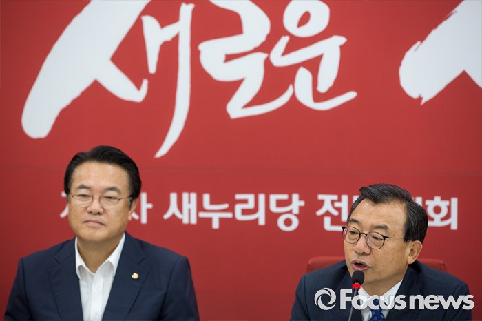 (서울=포커스뉴스) 이정현 새누리당 대표가 11일 오전 서울 여의도 국회에서 열린 최고위원회의에 참석해 취재진에게 지도부를 비롯한 최고위원의 모두발언 공개 없이 비공개 회의로 전환한다고 설명 하고 있다.