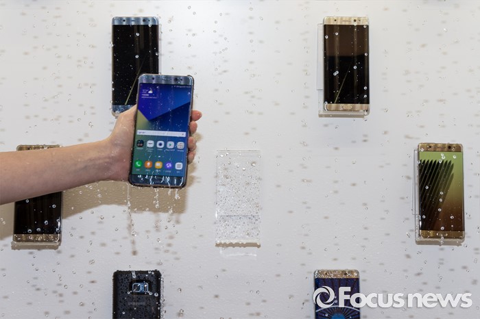 (서울=포커스뉴스) 11일 오전 서울 서초구 삼성전자 사옥에서 열린 '갤럭시 노트7 출시 미디어 행사'에서 관계자들이 제품을 소개하고 있다.