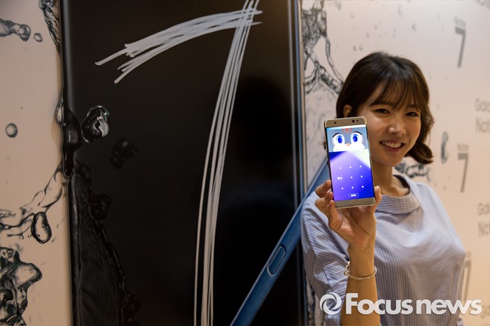 (서울=포커스뉴스) 11일 오전 서울 서초구 삼성전자 사옥에서 열린 '갤럭시 노트7 출시 미디어 행사'에서 모델들이 제품을 소개하고 있다.