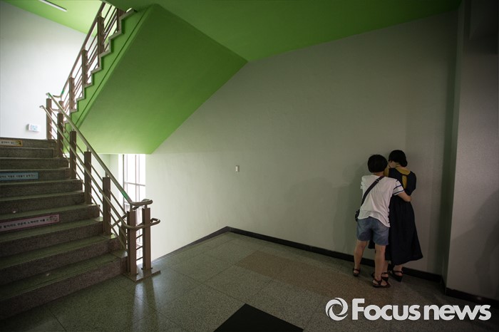 (안산=포커스뉴스) 세월호 참사에서 희생된 단원고등학교 학생들의 교실 이전 절차가 진행 중인 11일 오전, 경기도 안산시 단원고등학교 기억교실 복도 계단 앞에서 희생 아이들 어머니들이 부등켜 안고 울고 있다.